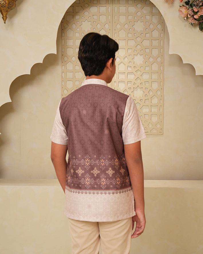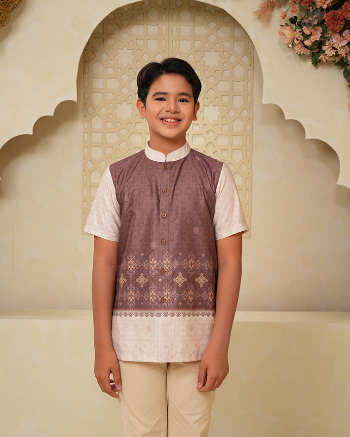 Pattern Mahameru eksklusif Greisy dihadirkan dalam interpretasi yang lebih halus dan elevated untuk anak, subtle, impeccably refined, dan tetap harmonis dengan sarimbit keluarga.  menghadirkan tampilan rapi, polished, dan effortlessly luxurious di setiap momen spesial.