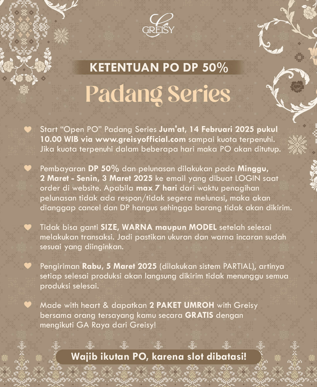 Original Pattern โ Motif eksklusif yang hanya tersedia di Greisy, memberikan sentuhan unik dan istimewa.