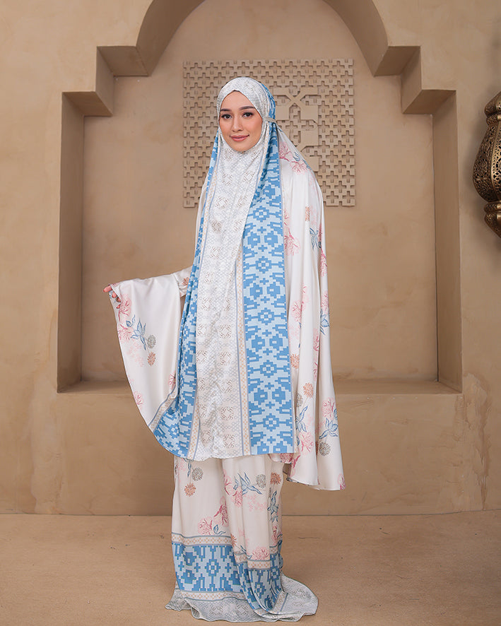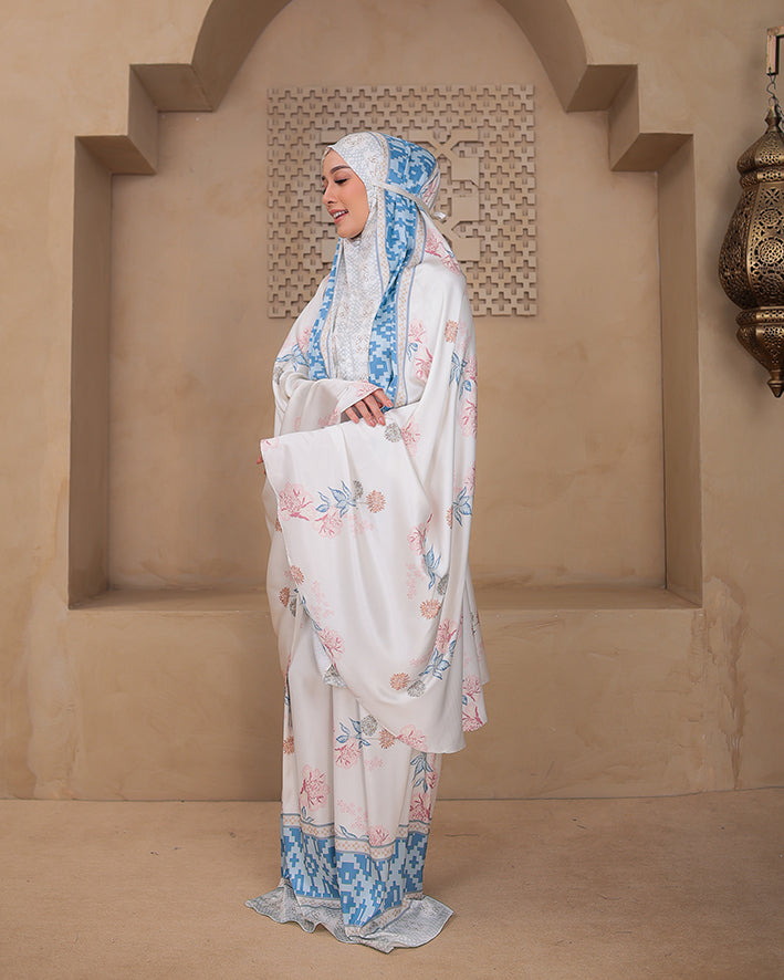 Puspa prayer set In Pearl pilihan tepat untuk berikan sentuhan feminim. Warna yang kontras tetap perpadu harmonis hadirkan look ibadah yang manis. Terbuat dari material premium (Armani silk) menjamin kenyamanan maksimal.