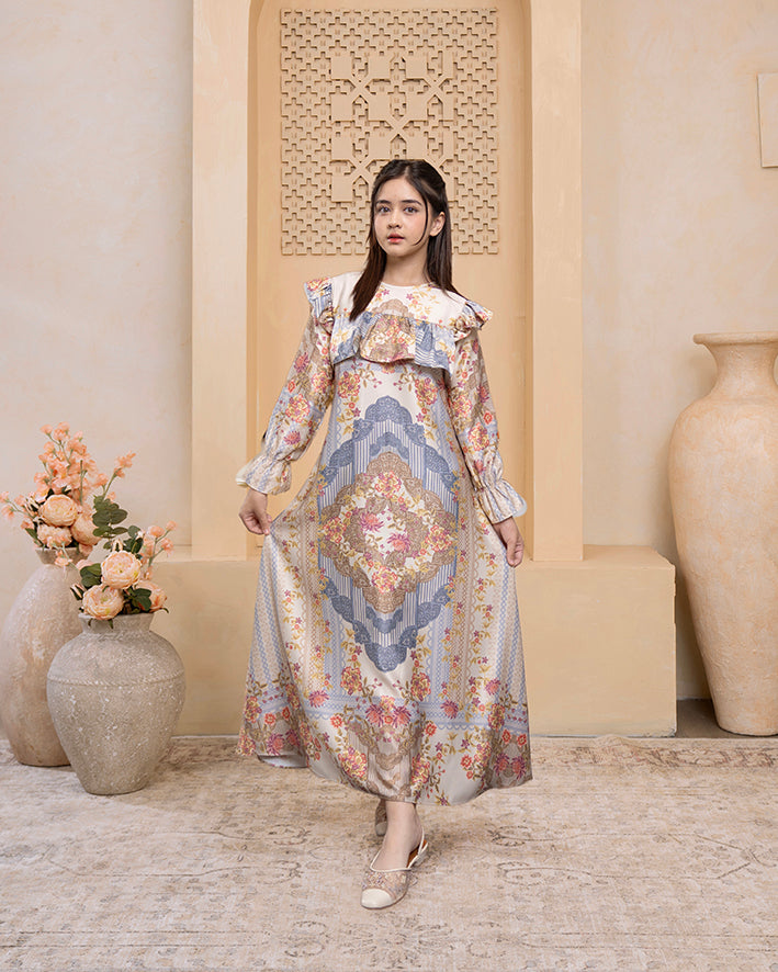 Sumba Dress Anak hadir dengan desain elegan yang tetap nyaman untuk sang buahhati. Terbuat dari material French Silk yang lembut dan breathable, memastikan si kecil tetap bebas bergerak dan nyaman sepanjang hari.