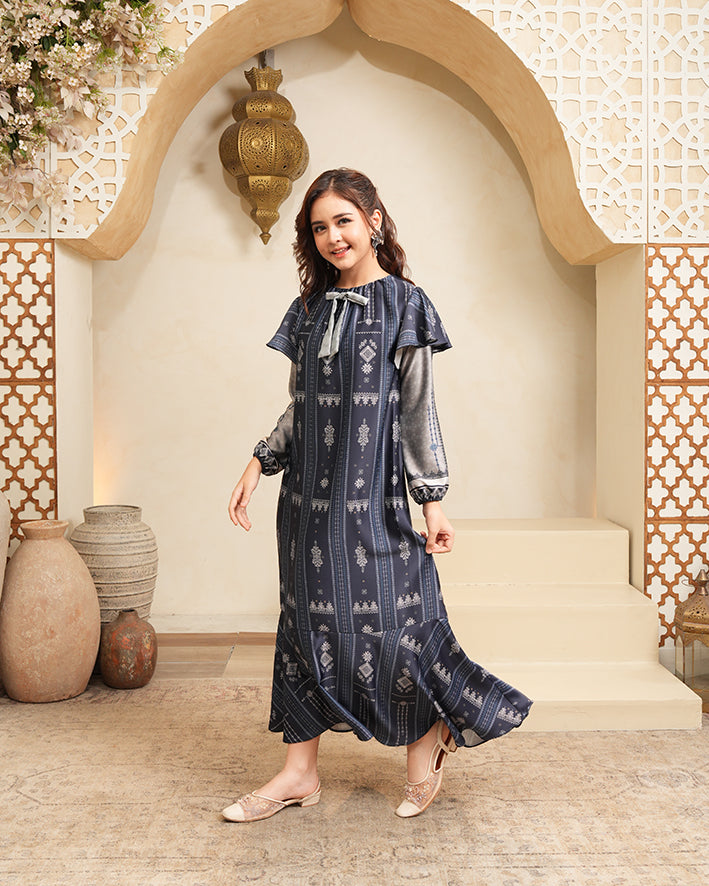 Graceful Kid Silhouette: Potongan dress ringan dan proporsional yang mendukung ruang gerak anak secara optimal, dengan siluet flowy yang tetap anggun dan neat.