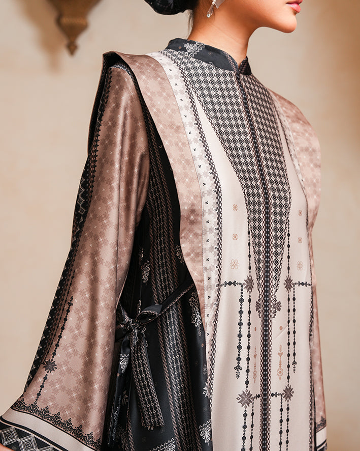 Signature Heritage Pattern: Motif eksklusif Greisy dengan komposisi geometris-ornamental yang terinspirasi dari kekayaan Nusantara, tampil defined namun tetap elegant.