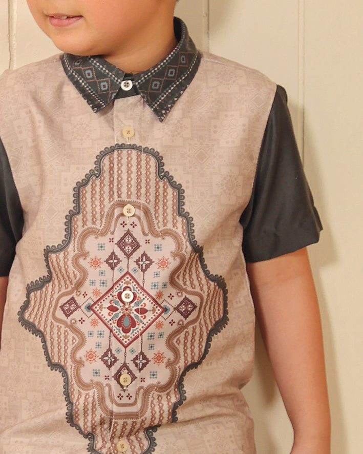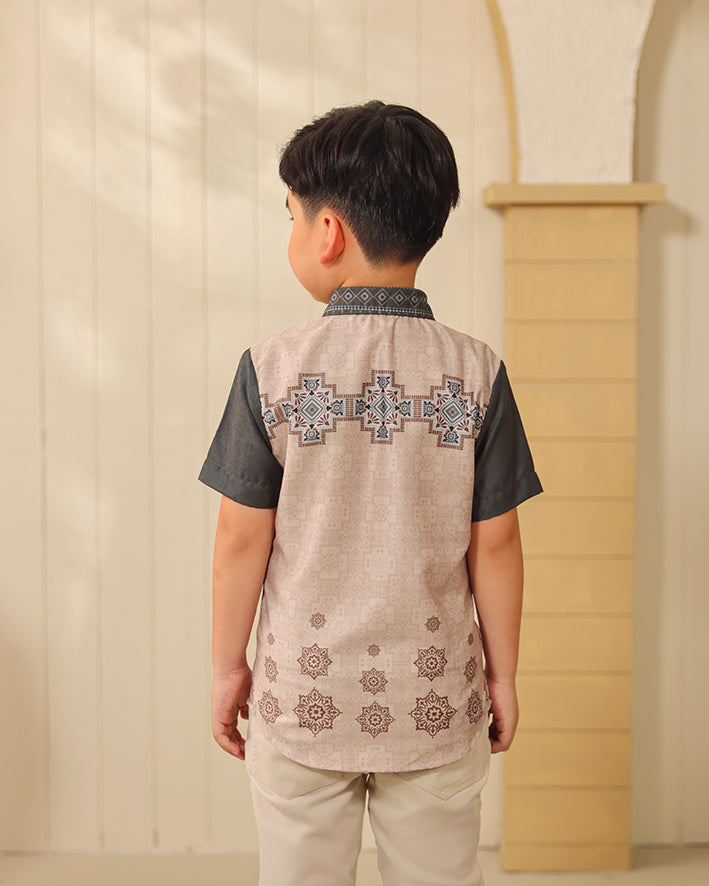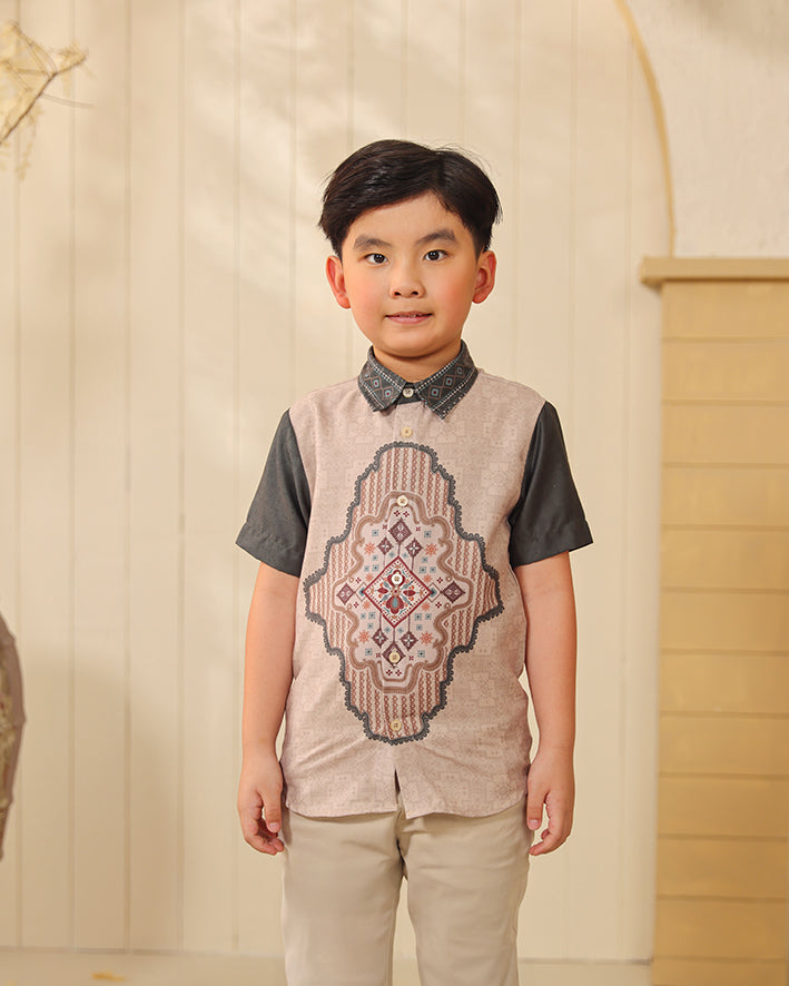 Signature Privé Pattern: Pattern eksklusif Greisy dengan komposisi geometris-ornamental yang bold namun tetap terlihat clean untuk anak, menghadirkan karakter heritage yang structured, neat, dan elevated.