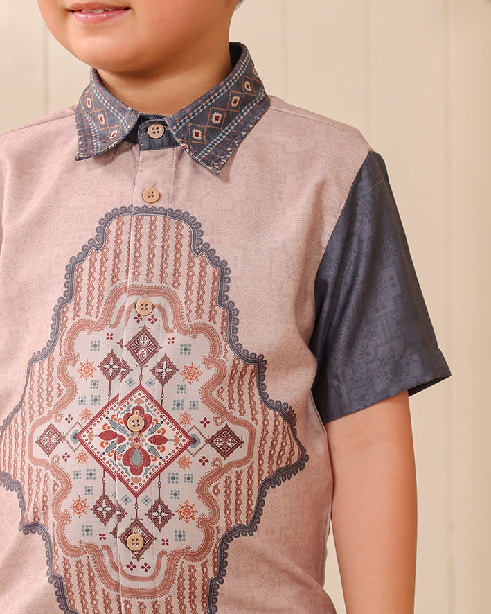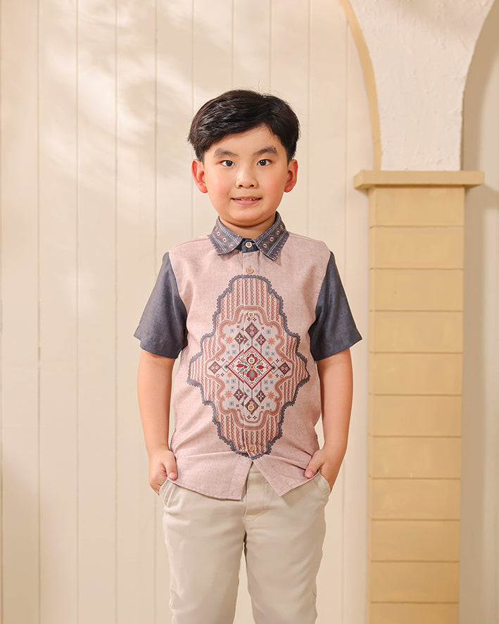 Signature Privé Pattern: Pattern eksklusif Greisy dengan komposisi geometris-ornamental yang bold namun tetap terlihat clean untuk anak, menghadirkan karakter heritage yang structured, neat, dan elevated.