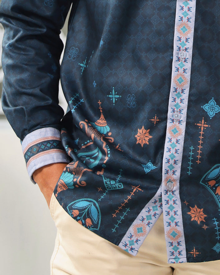 Signature Heritage Pattern: Motif eksklusif Greisy yang dikurasi dengan komposisi lebih subtle dan sophisticated, menghadirkan interpretasi heritage yang maskulin, tenang, dan timeless.