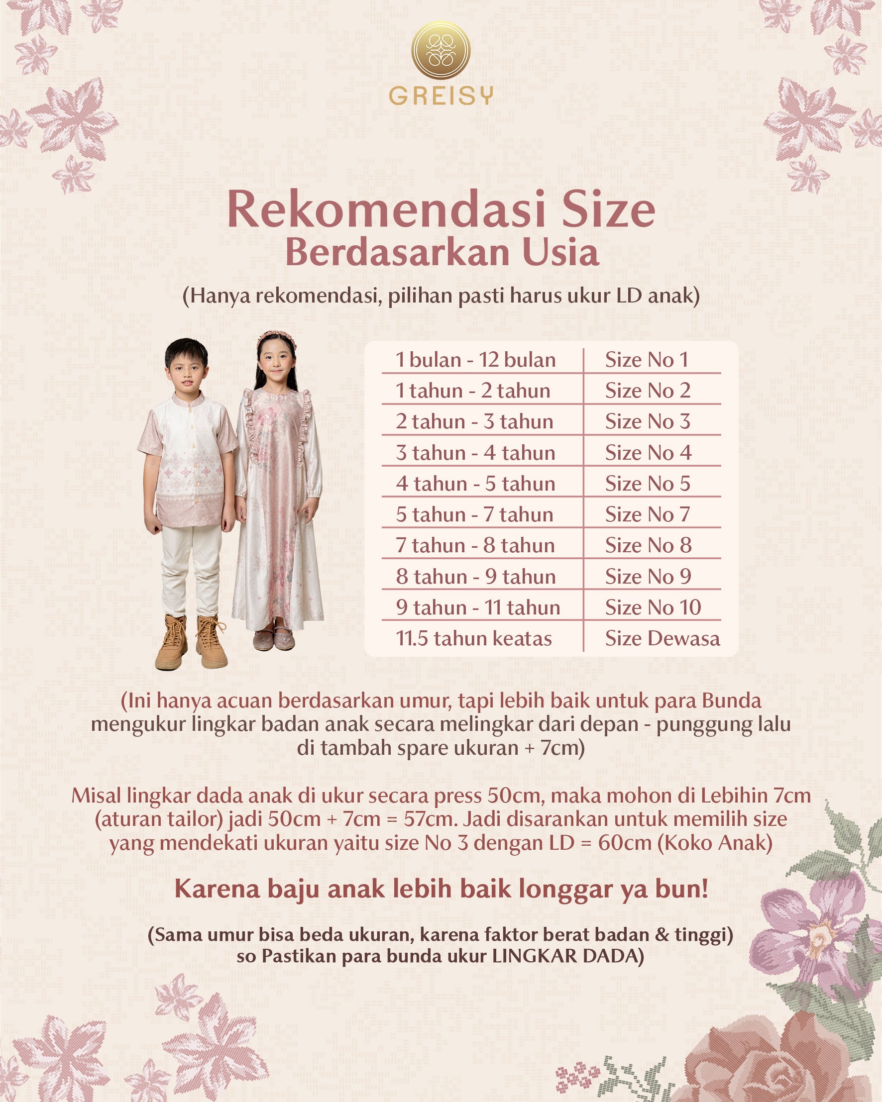 Signature Heritage Pattern: Motif Mahameru yang eksklusif untuk Greisy, subtle, timeless, dan delicately curated, dihadirkan dengan tampilan yang lebih manis dan refined untuk anak, tetap modern dan effortlessly elegant.