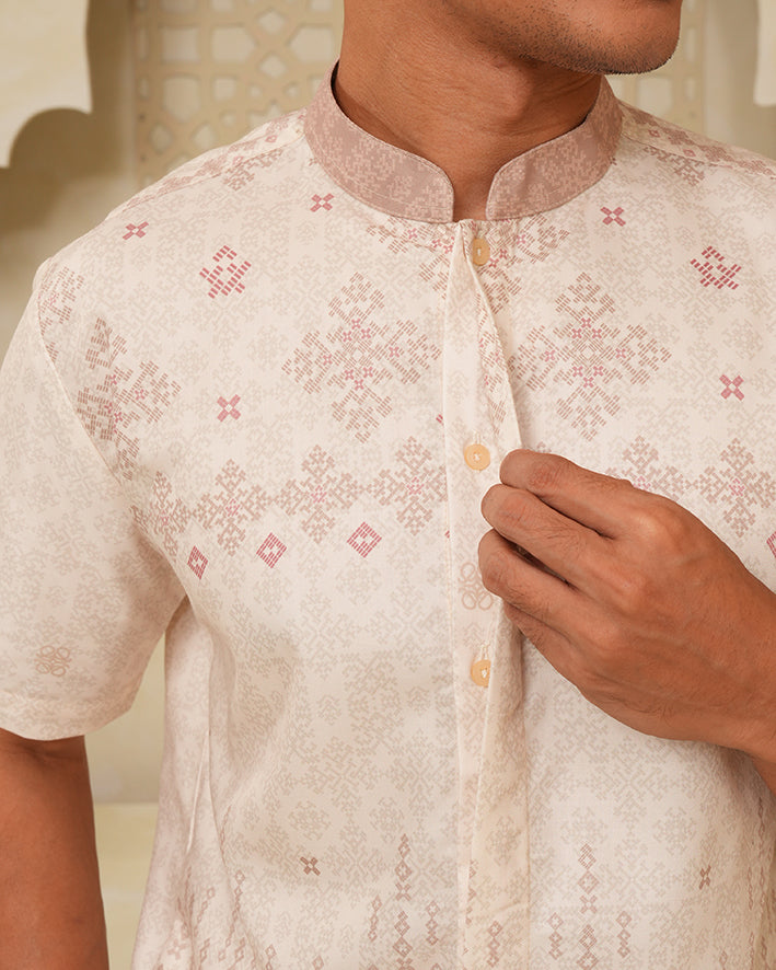 Mahameru Short Koko menampilkan Signature Heritage Pattern eksklusif Greisy yang dirancang dengan interpretasi budaya yang lebih refined dan sophisticated. Setiap detailnya mencerminkan karakter heritage yang elevated dan berkelas.