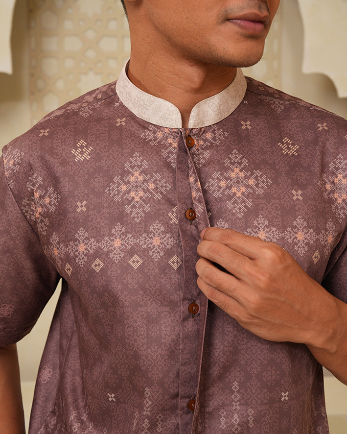 Mahameru Short Koko menampilkan Signature Heritage Pattern eksklusif Greisy yang dirancang dengan interpretasi budaya yang lebih refined dan sophisticated. Setiap detailnya mencerminkan karakter heritage yang elevated dan berkelas.