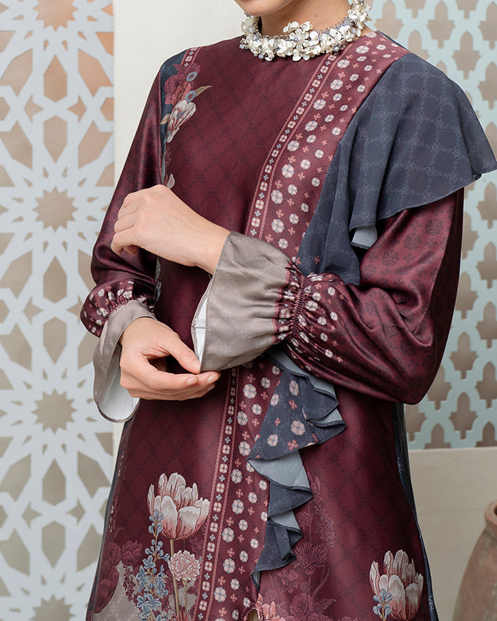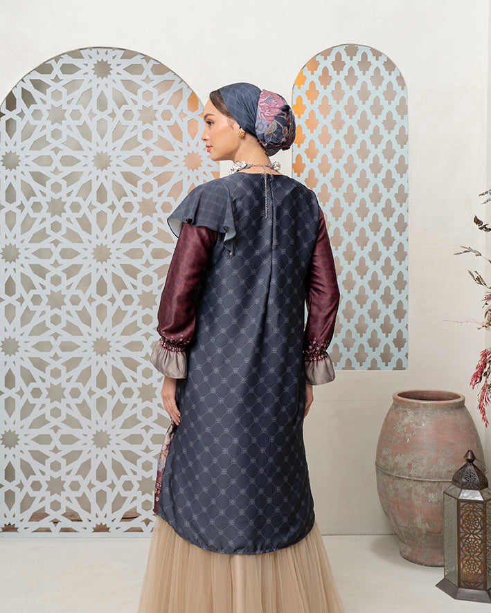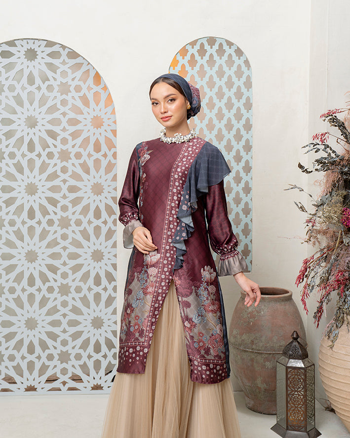 Raja Ampat Tunik dirancang dengan pendekatan artistik yang presisi, memadukan panel kontras dan motif floral heritage dalam siluet refined dengan layering asimetris yang lembut. Menggunakan Petal Silk Mix Tissu Chiffon, material ultra-light dengan tekstur halus dan drape yang jatuh indah mengikuti gerak tubuh, ringan, breathable, dan nyaman sepanjang hari.