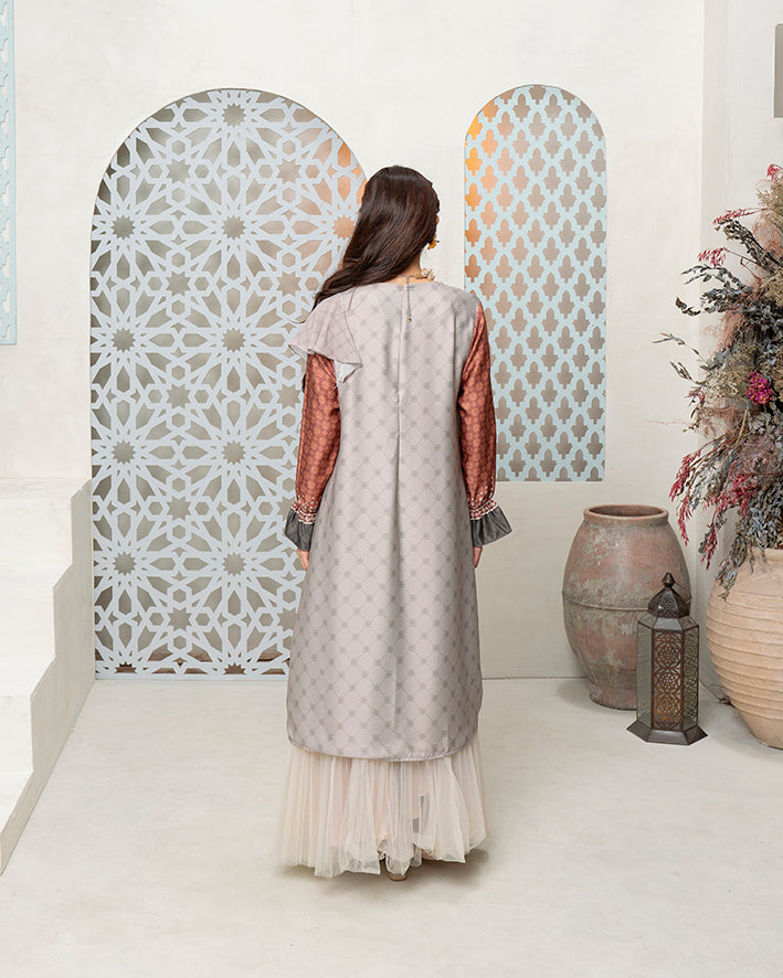 Refined Layered Silhouette: Panel kombinasi dengan aksen ruffle depan yang memberi tampilan graceful dan tetap polished.